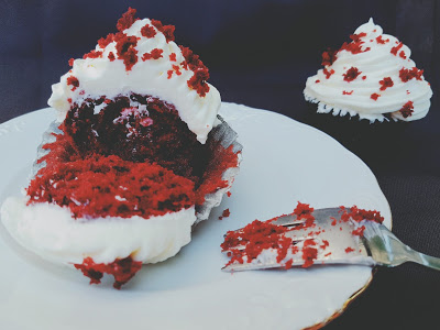 Probando mis postres aunque éstos Red Velvet no le ha dado tiempo a probar.