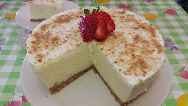 Primero empezamos con la base de la tarta derretimos la mantequilla con dos cucharadas de azúcar, y mezclamos con las galletas trituradas, en un molde redondo colocamos la mezcla y aplastamos con un tenedor hasta que esté toda la base cubierta, reservamos en la nevera.
