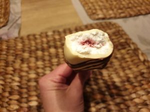 Dejamos que se solidifique el baño de chocolate blanco y los reservamos en el congelador dentro de una fiambrera.